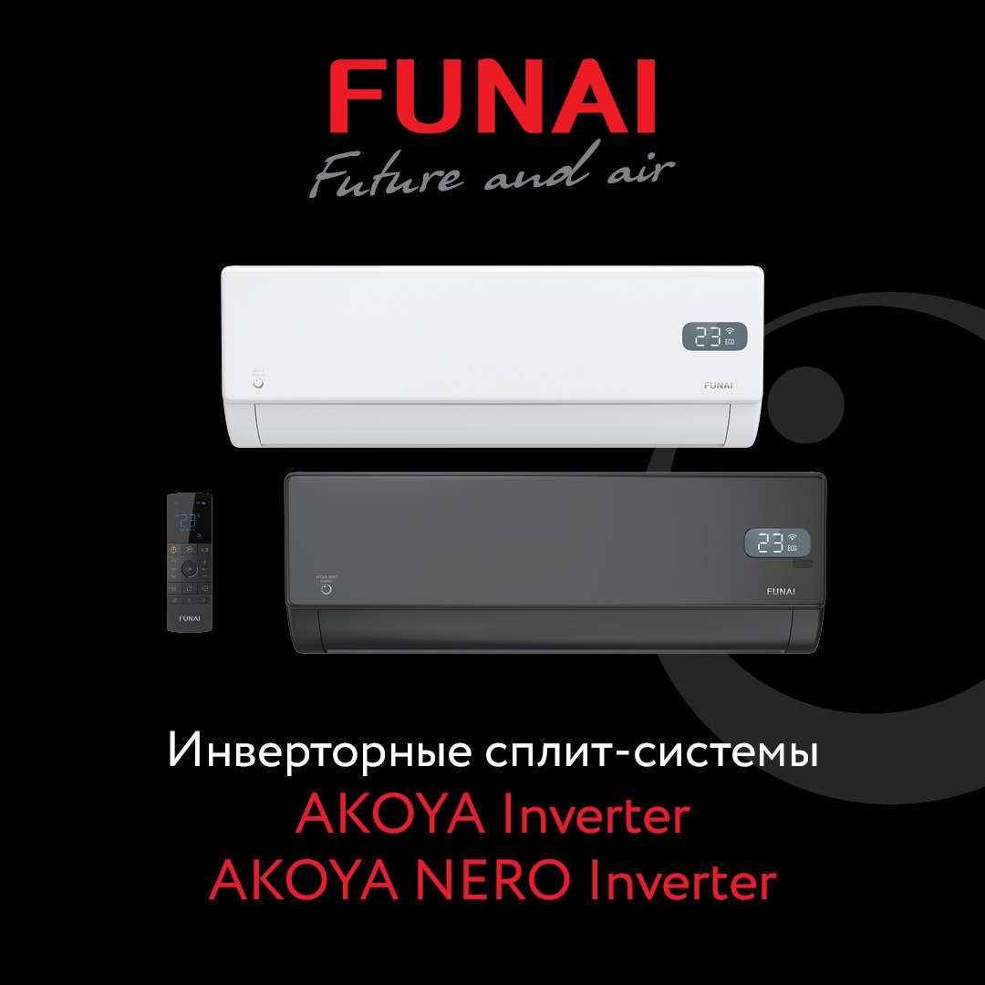 Инверторные сплит-системы FUNAI серии AKOYA Inverter в классическом матовом белом дизайне и AKOYA NERO Inverter в эффектном матовом черном уже на складе